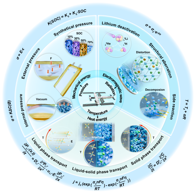 综述通过理论模拟从材料微观物理化学机制水平到整体电能源系统进行了全面概述,总结了基于各种电化学与环境条件耦合模型的相关理论公式,分析了极端温度、极端压力等对电池微观溶剂化结构、离子扩散和输运等关键性能参数的影响机制,明确构建基于电化学-环境耦合的理论模型和关系方程是开发极端环境适用电池体系及材料的关键。