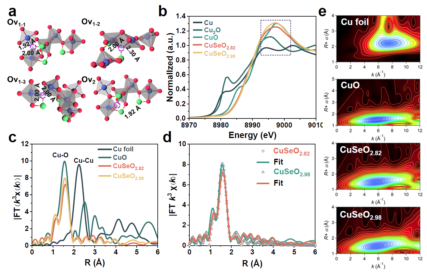 EXAFS表征揭示了材料中的氧空位以Ov1-3型(对称三配位,Cu-O键长2.00 Å)为主导构型。